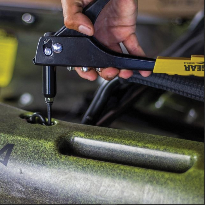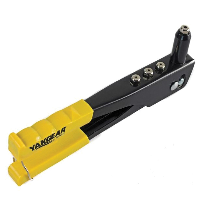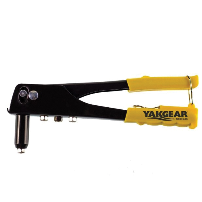 Adding a properly sized rivet is the strongest, fastest and simplest way to install a compatible accessory onto your kayak. This rivet tool comes with four interchangeable bits for using your preferred rivet size. The comfort grips ensure that the tool will not slip out while you are tightening your rivets. A wrench, which stores nicely in the handle, easily changes out the bit size wherever you are. It also weighs less than a pound, so you can take it with you anywhere it's needed. Instructions and tips for use are included. Rivets are sold separately. YakGear recommends using a YakGear tri-grip rivet kit when customizing your kayak.