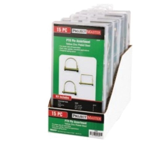 Midwest Fastener Round and Square PTO Pin Assortment, Steel, Yellow Zinc, Number of Pieces: 15, Includes: (5) 1/4 x 2-1/4 in, (5) 3/8 x 2-1/4 Round Pins and (5) 5/16 x 2-1/4 in Square Pins