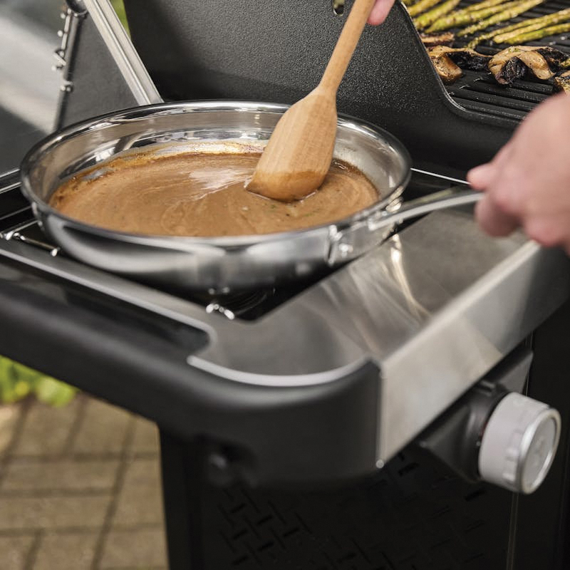 Grill food that tastes better than ever on the reinvented four-burner Spirit E-435 gas grill with sear zone and side burner. Create bold, flavorful sear marks on meat, fish and vegetables with two red Boost Burner knobs that unleash 40% more power in the sear zone. Ignite each individual burner easily with one-hand with Snap-Jet ignition and control the heat precisely with a full range of temperatures from high to low and everything in between. Make the most of your space by adding a variety of Weber Works snap-on accessories (sold separately) to the side rails. Keep platters, seasonings and tools within reach with side tables in a durable, scratch-resistant finish. Transform your grill into a griddle with a rust-resistant griddle insert (sold separately) or turn your grill into a pizza oven, wok, Dutch oven and more by adding a Weber Crafted frame kit and custom-fit grillware (each sold separately).